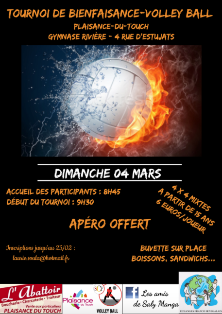 Le Sporting Club Plaisance Volley-ball a le plaisir de soutenir l’association « Les amis de Saly Manga » qui aide un village au Sénégal à se développer.